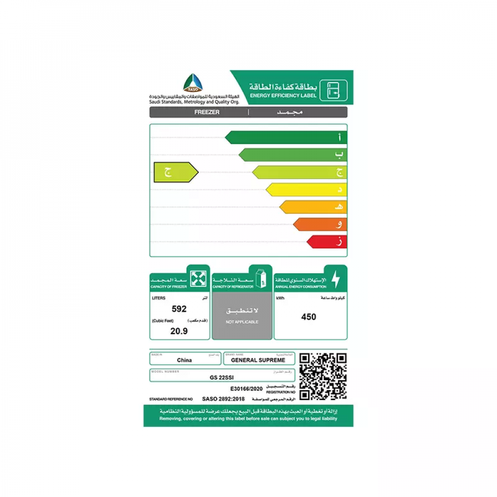 جنرال سوبريم فريزر رأسي(592 ليتر 20.9 قدم)، باب واحد، انفرتراستانلس استيل GS 22SS1